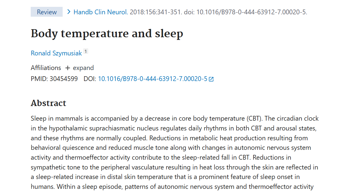 【3】Szymusiak R. Body temperature and sleep. Handb Clin Neurol. 2018;156:341-351. doi:10.1016/B978-0-444-63912-7.00020-5